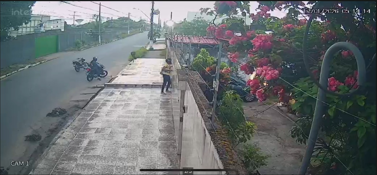 Nas imagens, é possível ver que tudo acontece em poucos segundos. Os assaltantes descem das motos já com armas apontadas para o motorista, que tenta retornar com o carro para dentro do imóvel, mas não consegue. Em seguida, os criminosos fogem levando o veículo.
