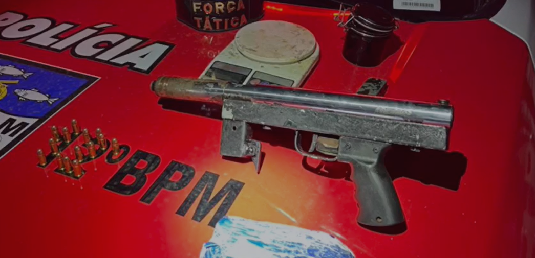 Com autorização da mulher do acusado, os militares realizaram buscas no imóvel e apreenderam cocaína, munições, uma balança de precisão e uma submetralhadora calibre .380.