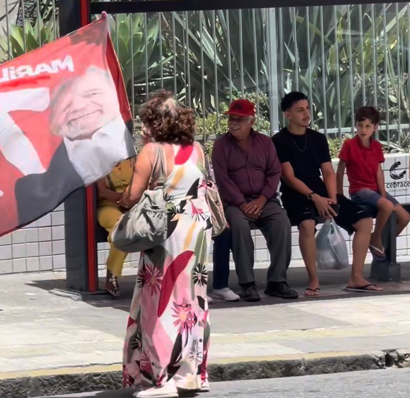 Por volta do meio-dia deste sábado, uma professora conhecida como “Inez” chamou a atenção ao realizar um protesto no Centro de Caruaru, município de Pernambuco. Ela portava uma bandeira com a imagem do presidente Lula e da ex-candidata ao Governo do estado em 2022, Marília Arraes, atraindo olhares de pedestres.